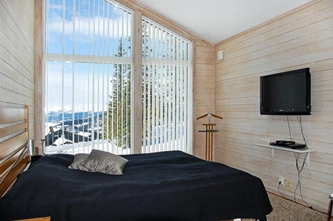 Sovrum 5: Dubbelsäng samt en garderob och TV. Fantastisk panorama utsikt genom stort fönsterparti.