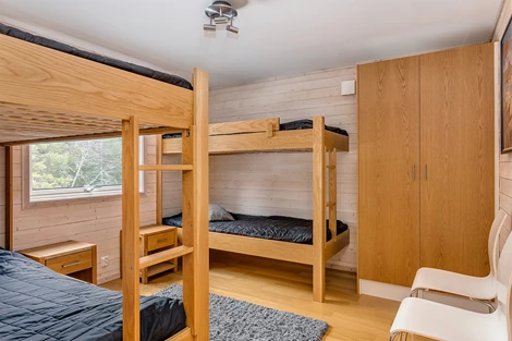 Sovrum 3: Detta rum har två våningssängar och garderober.