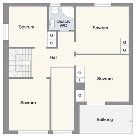Sovrum 4: Dubbelsäng, två garderober och ett linneskåp. Utgång till balkong.