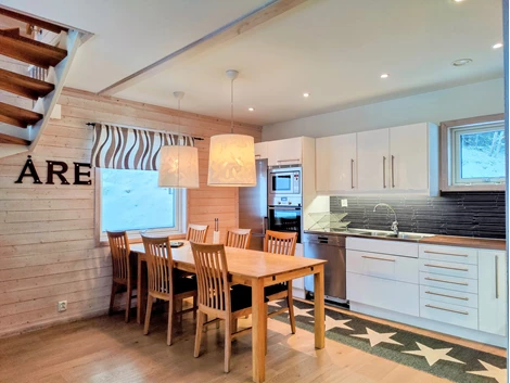 Välkomna till detta mycket fina andelsboende i Brf Kopparberget Åre. Här bor ni ostört i bästa läge med vacker utsikt ut över Renfjället och Åreskutan. Den fräscht möblerade lägenheten är disponerad på två våningsplan med hela 5 sovrum och totalt 12 bäddar. Allrum med braskamin och fantastiska fönsterpartier ut mot fjällen. Välutrustat kök med allt från våffeljärn till champagneglas. Två duschrum varav det ena med bastu. Huset är husdjursfritt. Härlig uteplats med fantastisk utsikt. Utvändigt förråd för skidor och cyklar. Parkeringsplats och två laddplatser för elbil eller elhybrid. Det är ski-in/ski-outläge och bara en kort promenad uppför vägen ligger Copperhill Mountain Lodge som erbjuder restaurang, spa och gym. Valda veckor 2026 är 7, 11, 34 , 48 och 49.