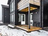 Fasad av liggande timmerpanel med knutar i timmer.