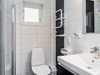 Badrum: Handfat med kommod, WC samt duschhörna. Handdukstork.