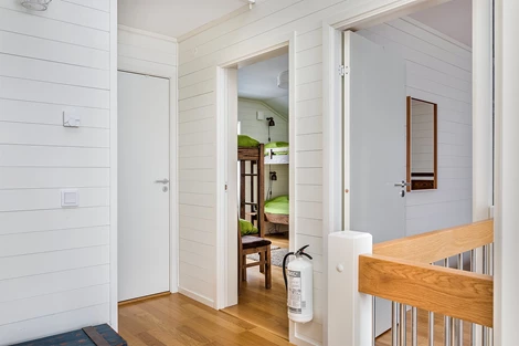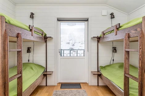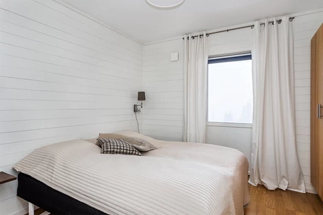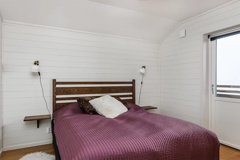 Sovrum 2-5: Tre av sovrummen har två bäddar och ett fjärde rum har fyra bäddar. Det ena sovrummet har utgång till balkong med magiskt utsikt.