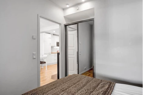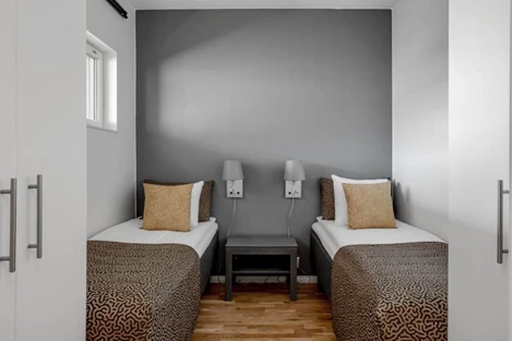 Andel vecka 47 i välplanerad lägenhet med två separata sovrum. Det finns två bäddar i varje sovrum.