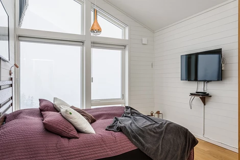 Sovrum 2-5: Sovrum 2 har två bäddar, sovrum 3 har fyra bäddar, sovrum 4 har en dubbelsäng och balkong med magisk utsikt och sovrum 5 har en dubbelsäng och panoramafönster med samma magiska utsikt mot Åreskutan och Åresjön samt tv på väggen