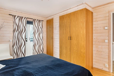Sovrum 4: Dubbelsäng, två garderober och ett linneskåp. Utgång till balkong.