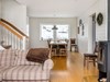 Allrum/kök: Öppen planlösning med kök och umgängesytor i samma rum. Öppet upp till nocken med hela 6 meter i takhöjd. Kaminen står mot en skifferklädd vägg. Övriga väggar är vita. Utgång till altan.