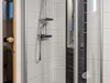 Badrum: Handfat med kommod, WC samt duschhörna. Handdukstork.